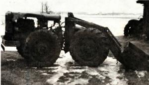 To build the tractor, Athorp converted two Allis-Chalmers WF models with wide front axles. By putting their rear ends back to back and by hinging the rear axle in the middle so that it pivots, Athorp ensured that the loader remains stable when the bucket is raised.