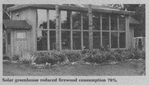 "It lowered firewood consumption from 15 full cords of hardwood during the winter of 1978-79 to an average of 3 1/2 cords for the past five heating seasons," says Joe Bacon, Spring Valley, Wis., who added a 38 by 14-ft. greenhouse to the south side of his 1928, 1,200 sq. ft. farm home.