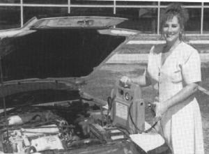 Central Supply & Rubber Co., 109 North 9th St., Omaha, Neb. 68102 ph 800 444-8666: "You can jump start any vehicle without the need for jumper cables or another vehicle using our new Jump-N-Carry. The portable unit has its own battery and jumper cables and comes in a one-piece molded case. It provides 12-volt DC power or portable 110/ 120-volt AC power (for portable AC power an inverter is required, allowing the unit to operate TV's, shop tools, etc.). It has 400 amps of cranking power. Two recharging methods can be used. Simply turn off the ignition key, connect the jumper cables, and start the vehicle. Or, turn off the ignition key, plug an optional male-male cord into a vehicle's cigarette lighter, wait several minutes and start the vehicle. A battery status gauge indicates power available and when to recharge."