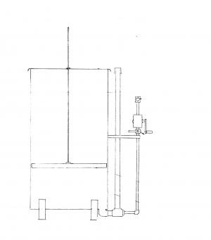A hand-cranked pump mounts on the side of the tank. Legs were made from 2 by 2-in. sq. steel tubing. A 2-in. fill pipe on the side of the tank runs to a fitting at the bottom of the tank.