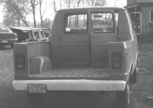 Wilbert bought the 1/2-ton, rear wheel drive van from a neighbor for $600. The van originally had been used by a phone company and had 87,000 miles on it. He cut off the back of the van, leaving 2-ft. high sides for the bed, and moved the rear doors forward. He used part of the cut-off body tin to fill in the cab on the sides of the doors. He also welded some of the left-over material into the bed sides to reinforce them.