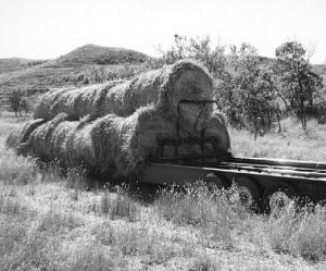 Brown's 28-ft. long bale hauler has a 9-ft. wide self-unloading bed on it. The bed sits on the axles, between the wheels, so overall width of the trailer is 10 ft. 8 in. It holds 15 5-ft. wide bales and 18 of the smaller 4-ft. round or big square bales. Since he built the trailer in 1992, he's hauled more than 30,000 bales. "Most of the time, I'm hauling less than 5 miles, but sometimes the distance is more than 25 miles," he says.