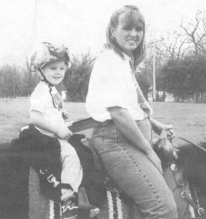 The "Tend-Um Rider Pad" is a 5/8-in. thick felt base with nylon straps sewn all the way through. The child sits in a 1-in. foam seat. There's a 4-in. front roll and a 4-in. cantle that both go from side to side, surrounding the child.
