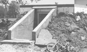 The shelter was built into a natural grade where there's enough drainage to carry moisture away from the structure. It was built using styrofoam blocks with hollow cores that are filled with concrete, resulting in thick, sound-proof walls.