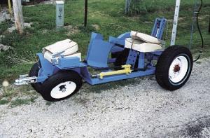 To facilitate seedling handling and planting, the planter is equipped with two seats facing the plow opener. Both riders can plant, or one can speed up the job by handing seedlings to the other rider.
