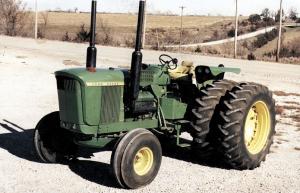 Back in the late 1960's I bought a Deere 5020 used at a farm sale and promptly repowered it with a V-8 71 Detroit diesel engine that came out of a semi tractor. The tractor was originally equipped with an in-line 6-cyl. 130 hp diesel engine which I thought was too small. This is a big, heavy tractor and I knew that it could handle the extra power. I had a machine shop in Council Bluffs, Iowa, do the actual work. They equipped it with big dual mufflers that were designed for a semi tractor. The mufflers are painted black and really look nice against the tractor's green and yellow colors. Over the years I've used this tractor to pull a 45-ft. field cultivator, 25-ft. Kewanee disk, and 12-ft. dozer blade. The engine has a lot of torque at low rpm's and responds very fast. I paid $2,000 for the tractor and $3,500 for the engine.