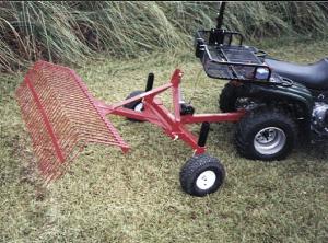 Rake fits universal toolbar. Great for removing pine straw, leaves, or heavy grass cuttings. Weighs 75 lbs. and is 5 ft. wide. Sells for $195.