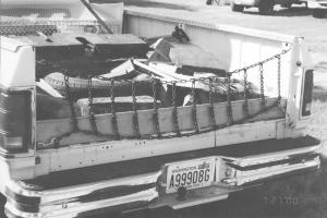 "It makes my pickup more fuel efficient and lets me hook up to my fifth wheel trailer without having to get out of the cab," says William E. Erickson, Ellensburg, Wash., about the "tire chain" tailgate that he made for his 1992 Dodge pickup using an ordinary car tire chain.