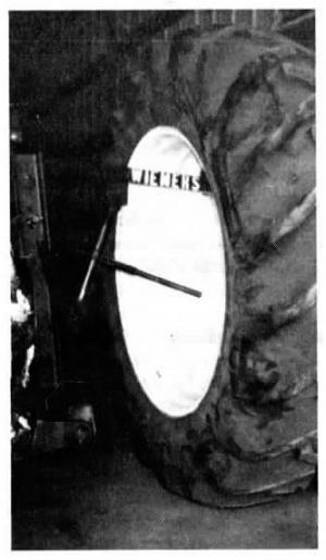 "I finally got the idea of mounting it on a 3-pt. hitch. I can pick up the wheel from storage and see where I'm going when I go to mount it on the tractor. The small wheels on the lift, which ride inside the rim, let me rotate the wheel making it easy to align the bolts. The ratchet handle attached to the linkage lets me swing the wheel back and forth slightly.