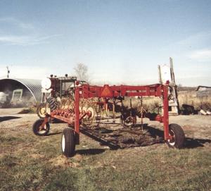 He wanted one big enough to get the job done fast. He had a couple of older 5-wheel Vicon wheel rakes, but they were worn and small. When he priced new rakes,