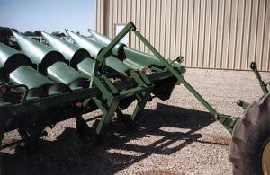 To tip heads, Garman uses a tipping tool which fits on either a tractor 3-pt., a forklift, or a skid steer loader.