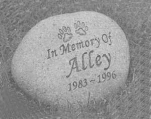 The stones are sold in small (3 to 6 in.), medium (6 to 9 in.), and large (9 to 14-in.) sizes. Images can be included on medium and large stones at no extra charge. They include cat paws, dog paws, bone, feather, or heart.