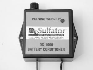 The "DeSulfator" simply connects to the battery and prevents sulfur buildup by continually sending electronic pulses through the plates.