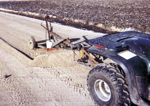 "I use it mainly to level our driveway. It gives my Polaris 500 Magnum 4-wheeler quite a workout," says Nordby. "It'll even dig up grass on the side of a road. The winch is rated at 1,500 lbs. so it's dependable and won't get hot. I think it works better than a 3-pt. mounted blade because the blade doesn't lift up whenever you go over a bump but instead cuts right through it."