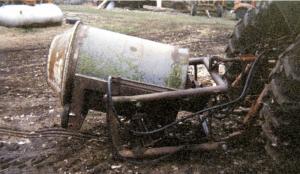 He Converted Transformer Into a 3-Pt Hydraulic-Operated Cement Mixer MISCELLANEOUS EQUIPMENT Miscellaneous 27-4-41 I converted an old 10,000-volt electric transformer into a 3-pt. mounted, hydraulic-operated cement mixer. I got the transformer free from the power company where I work. I cut it up to make a drum and then mounted a ball fin inside it that I made out of an old grinder. An orbit motor is used to chain-drive a rubber wheel that rotates the drum. The entire unit mounts on a homemade steel pipe frame. A pair of hydraulic cylinders are used to tilt the mixer up or down in order to dump the material.