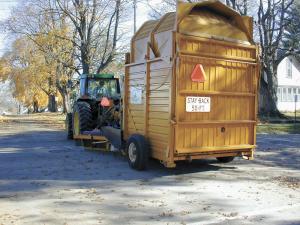Before switching to the Hay Stacker, residents would sweep leaves into the street and Copeman's 4 to 5-man crews would go out with a garbage truck equipped with a chute on back. A skid steer would pick up the leaves.