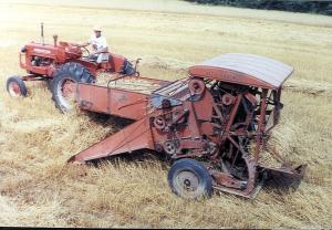Allis Chalmers Round Baler, Round Bale Loader BALERS Balers 27-6-41 Thanks for your article in the last issue on my collection of Allis Chalmers tractors and other equipment. I thought you might enjoy these additional photos of my AC #10 round baler, round bale loader, and my 1936 self-propelled AC combine, all of which we ran this summer at Wheat Harvest Days on my farm. (Marion Klutzke, 1928 N. 550 W, West Lafayette, Ind. 47906 ph 765 583-4512)