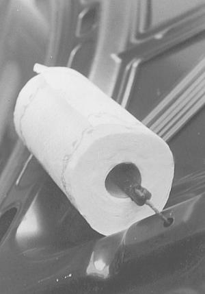 Darryl Foreman, Lafayette, La.: "I mount a roll of paper towels on hangers that attach to the frame on the underside of the trunk lid on my Buick Century car. That way I always have a towel handy to clean off my hands when taking stuff in or out of the trunk or after changing a flat tire, etc. The roll is always up out of the way instead of rolling around on the bottom of the trunk.