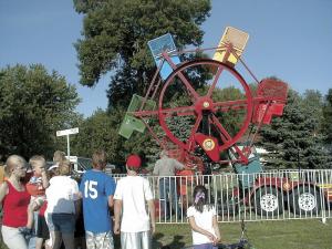 Mini Ferris Wheel Is A "Business On Wheels" FARM HOME recreation 28-4-3 small portable ride that retired farmer Cornie Folkerts of Inwood, Iowa, patented and now builds for sale.
