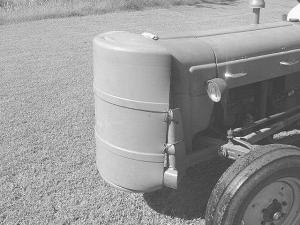 "I cut a plastic barrel in half and drilled some holes along the edge, then wired it to the front grill guard. It protects the grill opening from flying debris and pushes everything to one side or the other," says Lowrance. "Air is still able to come in from the back side of the barrel. I also folded a double layer of window screen in between the grill and the radiator to catch whatever material gets sucked up."
