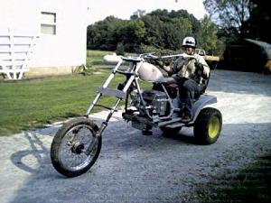 To make the 30-in. long handlebars, they cut down a motorcycle sissy bar and welded it to a standard handlebar set.