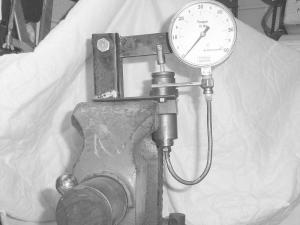It became a simple matter to install a 300 psi pressure gauge and put a home made face on it replacing the 300 psi mark with a 60 ft. lbs. mark and dividing the remainder of the dial accordingly.