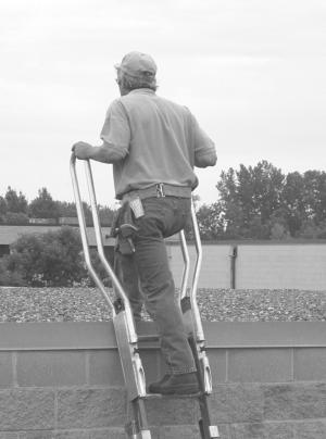 That's why American Innovations Corp. came out with the "Walk Through" railing that adds 40 in. to the top rung so you can safely get on and off it even if you're wearing a loaded tool belt.