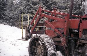 The loader has found plenty of uses from bulldozing dirt to loading gravel out of a gravel bank and lifting machinery at a twice-yearly farm machinery auction. Hoover's home-built 7-ft. bucket made with 3/16-in. steel has had to be reinforced several times to match the loader's lift capacity. So far, the home-built forks have yet to bend.