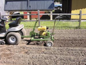"I use it on my 30 by 60-ft. garden. It works great," says Burie. "The rototiller has a forward motion of its own so the garden tractor is just guiding it, not pulling it. It takes only about 30 seconds to remove the rototiller from the trailer if I ever need to operate it manually.