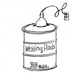 "My buddy uses a 30-gal. barrel to store welding rods. To keep the rods dry, he cuts a hole in the lid and affixes a reflector-type trouble light. An added bonus is that his cat, who likes to hang around in the shop, can lay on the lid next to the light and stay warm even in the coldest weather. It makes a nice, cozy perch for him."