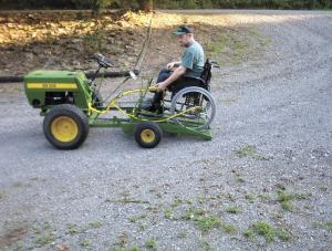 He also made two stick shifts from rebar. One serves as the brake while the other controls the hydrostat drive. The Don Dear has an electric start and goes about 10 mph.