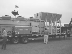 An added advantage of the compact design is portability. DryTech is offering three variations on their units. A permanent, stationary unit hooked into a standard 120-amp system will retail for about $65,000. Their Farm-duty Mobile unit is designed for use at remote grain bins. It will retail for up to $8,000 more, depending on whether the buyer has his own flatbed and generator. A third unit, the Interstate Highway Mobile, is equipped to meet all DOT regulations.