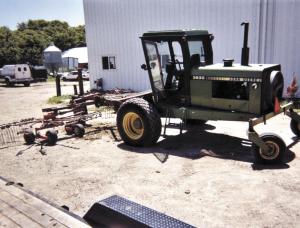 "I bought it from Dave Holt, a local farmer who has since passed away," says Palmer. "His uncle used to call him the Thomas Edison of farm machinery. He could do most anything. When a dealer wouldn't give him anything for his Deere 3830 swather on trade, he decided to make a self-propelled rake with it."