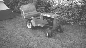 To make the conversion, he cut off the tractor's original spring-mounted seat and bolted a metal frame on in its place, then bolted the bus seat to the frame. He added a metal railing on both sides of the seat, as well as seat belts. The school bus seat was worn so he put new upholstery on it.
