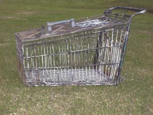 The idea for the traps came to Biskup while he gazed at two shopping carts on offer at a garage sale. After paying $5 for each, he brought the carts home, removed the wheels, and welded an expanded metal top onto each basket.