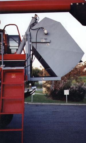 The 7 112-ft. long by 3-ft. high by 2-ft. deep bin attaches to a bolt-on mounting frame that can easily he taken o11 and transferred to another combine.
