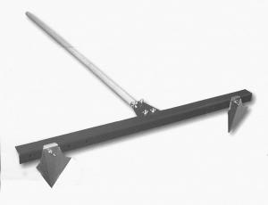 The pull-behind unit comes with a hardwood handle with a powder-coated steel head that supports a pair of bolt-on, V-shaped spades. The head has a series of holes at each end, allowing the row spacing to be adjusted by simply relocating the bolts that support the spades. Row spacing can be adjusted anywhere from 22 to 37 in.