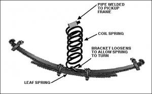 The top end of the coil fits through a short piece of pipe welded to the truck's frame.
