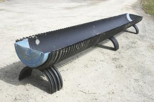 "We cut them in half lengthways with a saw and then cut used 55-gal. plastic drums into fourths to close in the ends of the troughs. We used a section of the troughs to serve as legs, bolting them on upside down with 2-in. fender washers (use stainless or galvanized bolts and washers). We also use bolts and large washers to attach the barrel ends.