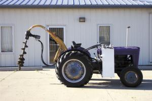 Don Haacke's hydraulic posthole auger is almost bigger than the Ford Jubilee it's mounted on.