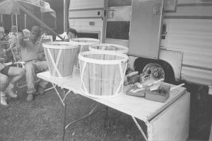 Hrupsa sells his baskets "topless" for $30 (1 bu.), $20 (5/8 bu.) and $12 (2 quart). The padded lids sell for $20, $17 and $10, respectively. He adds a shipping charge for mail orders.