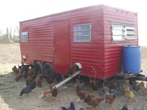 Student-Built Mobile Chicken Coop LIVESTOCK Poultry 33-3-6 Thanks to some creative high school students, Chad Jordan has a new 8 by 20-ft. mobile chicken coop made from an old house trailer.