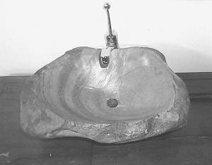 "I get the rocks from my small acreage. They're either shale or slate. The rocks that I use to make the sinks have a close grain without any seams, so water can't leak out."