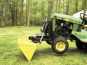"It's like having a powered wheelbarrow with me wherever I go," says Liskey. "The 17 hp tractor has fluid in its lugged rear tires and 250 pounds of rear weight, so traction isn't a problem. It works fast. One time a neighbor had a tandem axle dump truck unload dirt in his yard, and I was able to level all of it for him in just one hour. I also use it to push over small trees, stumps, and clear brush, and I've used it to move sod and mulch for my son-in-law, who does subcontracting work for a home builder."