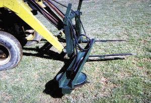 "The mower is about 8 to 10 in. high and cuts a 2-ft. wide strip under the fence," Parker says. "It mows backwards or forwards. It'll even cut brush up to the size of a broom handle."