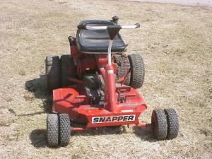 He didn't want to use a push mower to mow the hills on his terraces, but the Snapper didn't have enough traction. He got the extra wheels for the back from other Snappers he uses for parts. The front end still slipped so he put duals on front as well.
