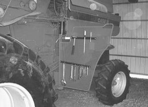 He Hangs Tool Racks Inside The Access Door On His Case IH Combine COMBINES Miscellaneous 33-3-36 Brian Haubrich, Glenbain, Sask.: Brian says this is one of the best ideas he's ever had. He hangs tool racks inside the access door on his Case IH combine. He says it's much more convenient that trying to carry a toolbox on the combine. He also hangs toolracks on his Conserva Pak air seeder. He says you have to twist the hooks on the racks so wrenches won't jump off on rough ground.