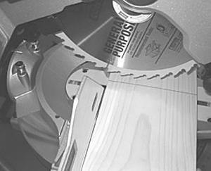 Add-On Laser Guide For Chop Saws WOODLOT EQUIPMENT Chain Saws 33-3-37 "Our add-on laser turns on automatically only when the blade starts to rotate and shuts off when it stops," says Bob Bonsi, Laser US, Inc. "Other units have to be turned on, and if you don't notice, they stay on, wearing out the battery. I've had one on my circular saw for several years, and the battery hasn't run out yet."