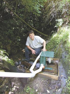He explains that just two to three liters of water per second falling 90 to 130 meters can produce as much as 1800 watts.