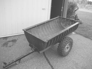 Culvert Makes Simple Dump cart WAGONS/TRAILERS Miscellaneous 33-3-35 When Kyle Sand needed a dump cart for hauling manure to his garden, he made a dump cart out of a five foot section of 32-in. culvert. Cut in half lengthwise, the smooth interior lets material slide out easily when tipped. The corrugated exterior adds strength. For ends, Sand cut a recycled street sign in half.